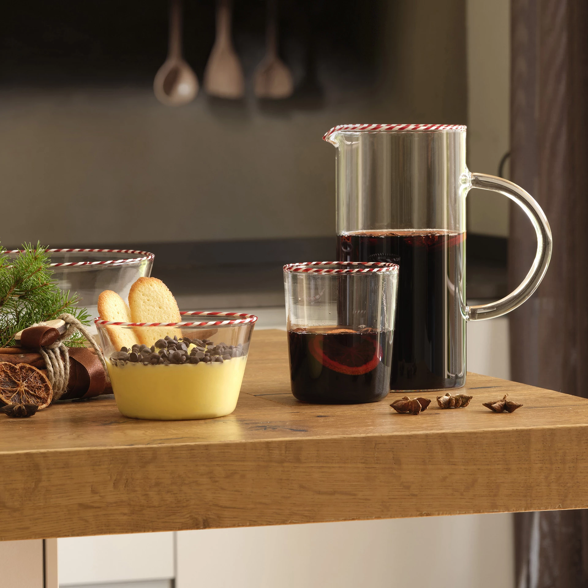 Sweet caraffa in vetro borosilicato trasparente con manico con bordo filo rosso e bianco
