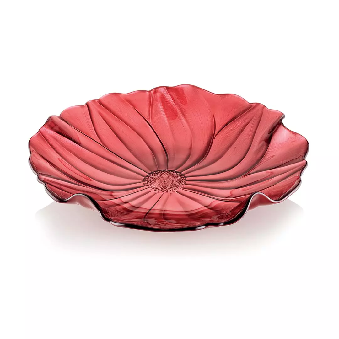 Tutti gli oggetti in vetro pressato con decoro vinaccia della collezione Magnolia hanno un design originale e ricercato, caratterizzato da una forma e un motivo che riproducono la forma di un fiore.