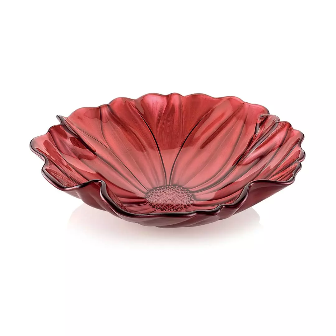 Tutti gli oggetti in vetro pressato con decoro vinaccia della collezione Magnolia hanno un design originale e ricercato, caratterizzato da una forma e un motivo che riproducono la forma di un fiore.