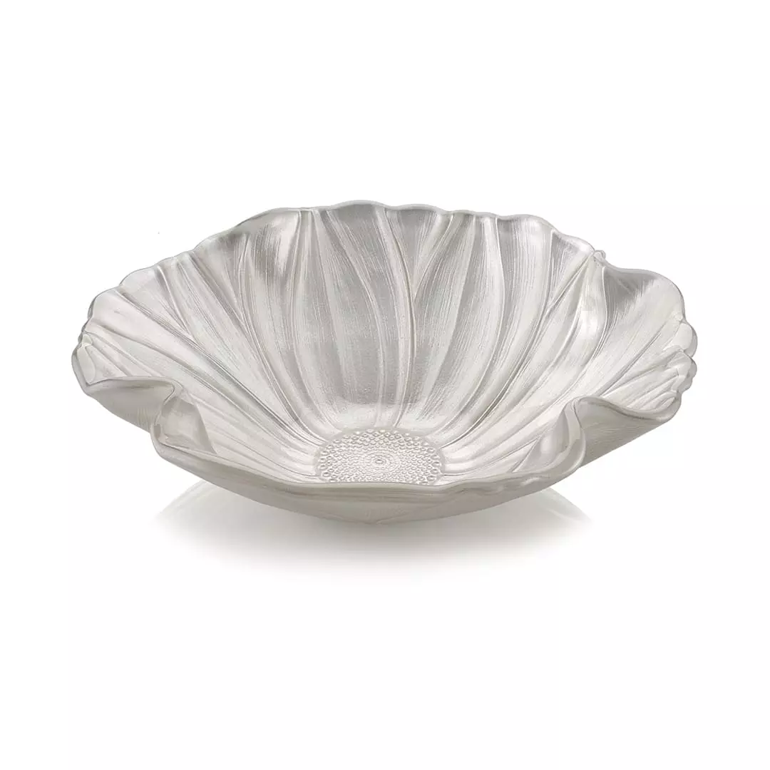 Tutti gli oggetti in vetro pressato con decoro sabbia perlaceo della collezione Magnolia hanno un design originale e ricercato, caratterizzato da una forma e un motivo che riproducono la forma di un fiore.